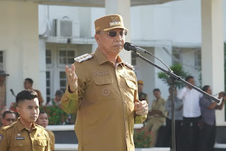 Wali Kota Bima H A Rahman H Abidin, SE saat pimpin apel perdana di halaman Kantor Wali Kota Bima. Kota Bima, Zona Rakyat.- Wali Kota Bima, H...